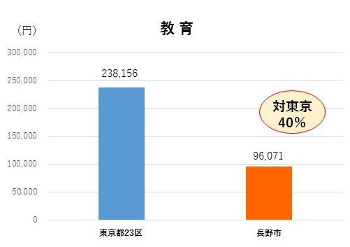 今回の調査の中でもダントツで東京が長野を上回っています。特に学習塾の月謝等の費用が大きくかかっているようです。