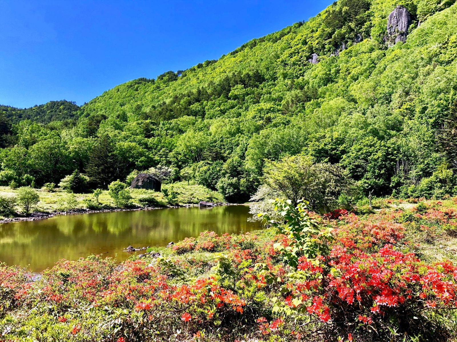 レンゲツツジの見どころとして、「大池周辺(標高約1,500メートル)」「ツツジハウス周辺(標高約1,600メートル)」「大平周辺(標高約1,800メートル)」がありますが、標高差があるため、見頃の時期もかわります。