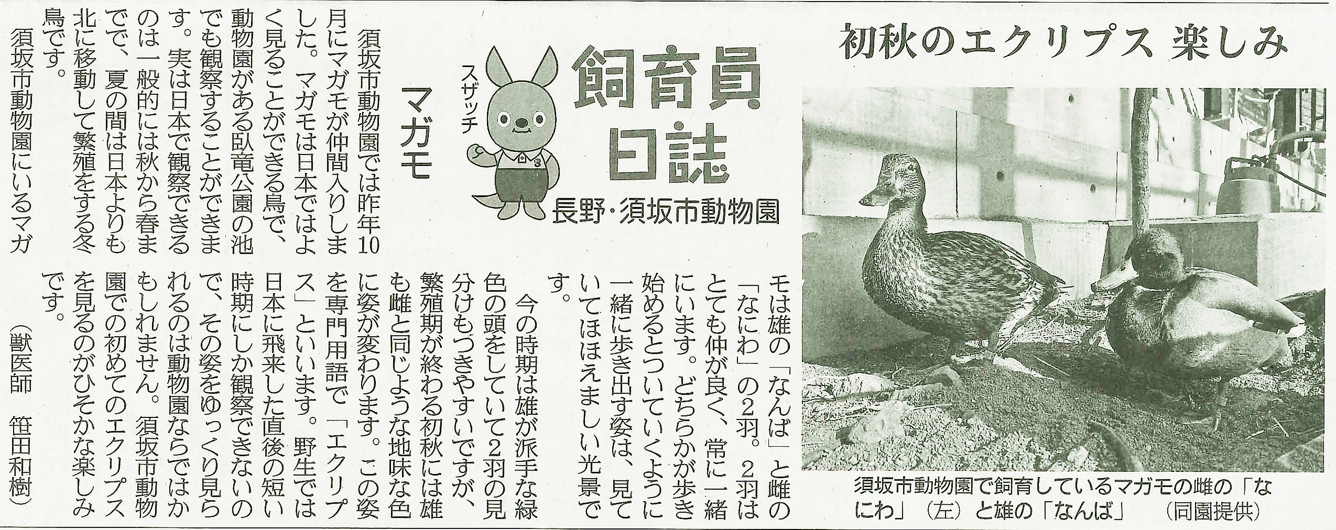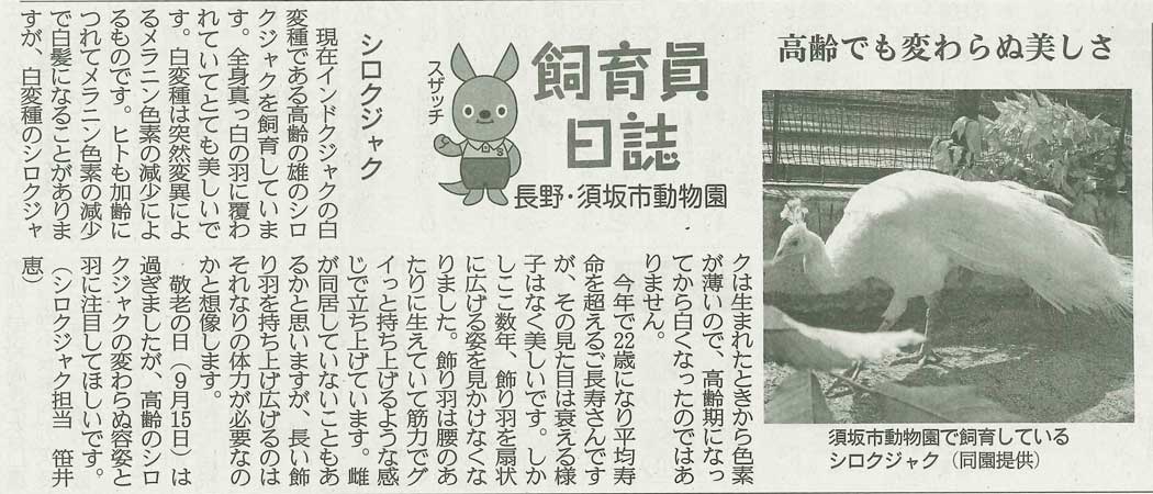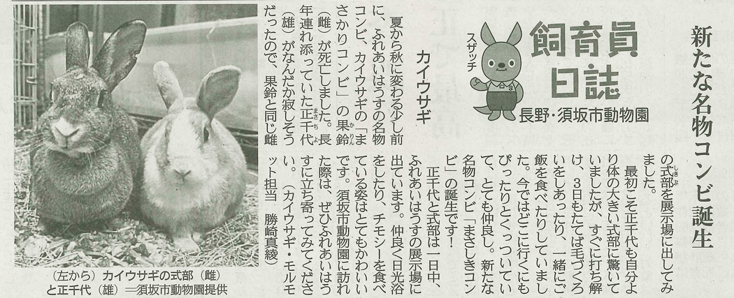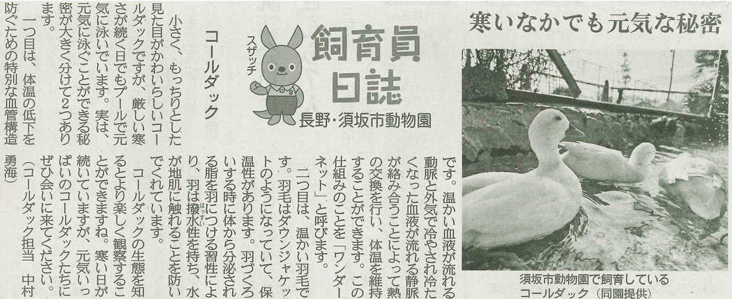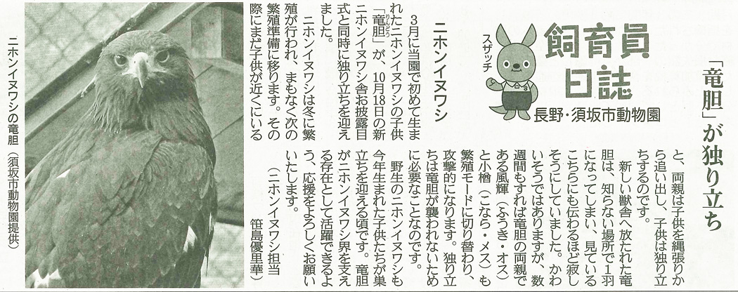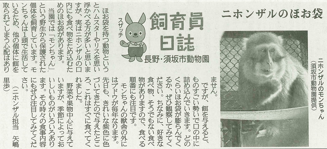 産経新聞朝刊(長野県版)で動物園の活動状況や動物の飼育状況などを記した「飼育員日誌」を連載しています。(2018年6月13日開始)